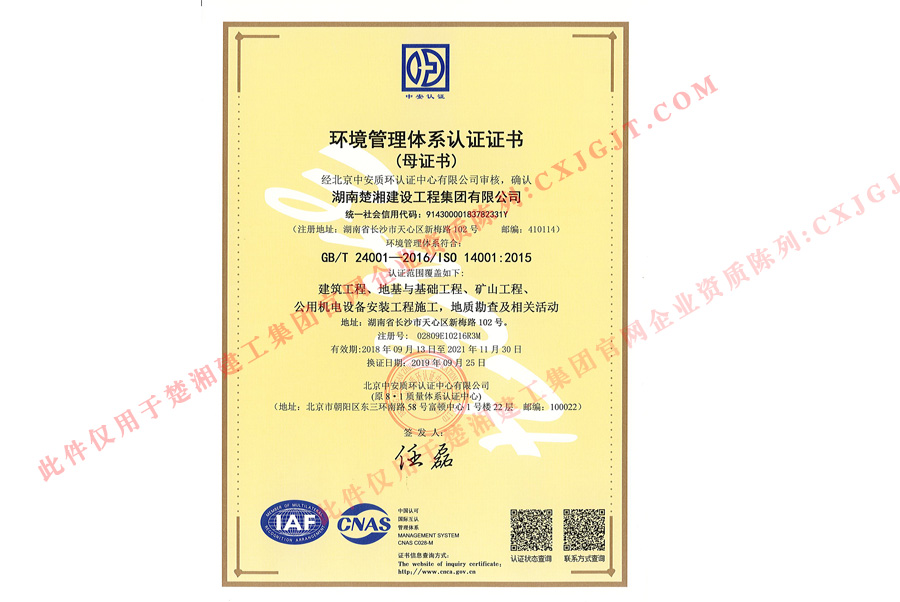 環境管理體系認證證書